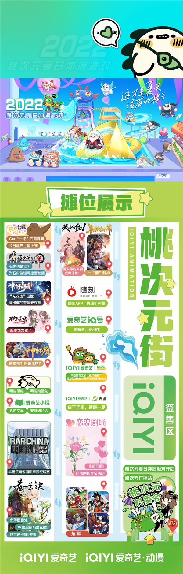 随着暑假悄然来临,爱奇艺动漫特别安排了“桃次元夏日冲浪派对”活动。本次活动包括多部动漫新番、线上专题、爱奇艺IFC动漫游戏嘉年华线下活动等。二次元用户可以通过线上观看动漫作品、打卡专题活动、现场参与动漫展会等方式,从线上到线下收获暑期专属的快乐。