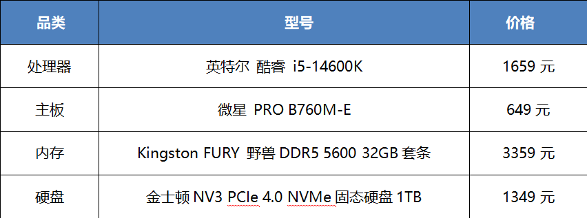 英特尔酷睿i5-14600K是一款性价比很高的中高端处理器,6大核8小核20线程,大核频率3.5-5.3GHz,小核频率2.6-4.0GHz,二级缓存20MB,三级缓存24MB,最重要的是集成了UHD 770核显,其性能堪比入门级独立显卡,不过性能受内存影响较大。匹配的主板选择了微星PRO B760M-E,这款主板性价比很高,并且是DDR5内存版本,因为UHD770核心完全依赖系统内存带宽,所以DDR5内存的高带宽比DDR4会好很多,当然组建双通道提升带宽更是必然!